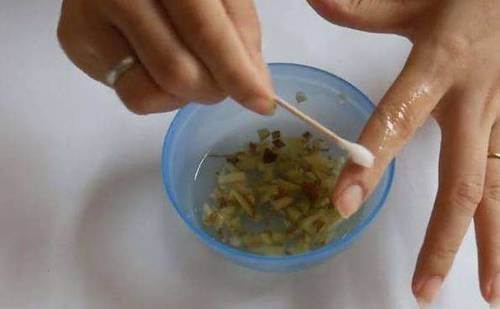 2 用棉簽蘸取浸泡液點塗患處,每日3-4次